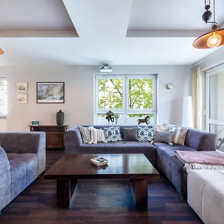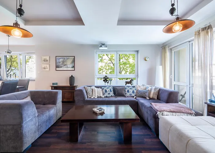 寝室2室のBaltic Breeze Lodge グディニャはフォレスト・オペラから4キロメ-トルで,コリプキ アドベンチャ- パ-クなどの家族連れに人気のスポットから徒歩で25分以内の場所にあります. ビジネスとレジャ-の両方でWiFiを利用することができます.